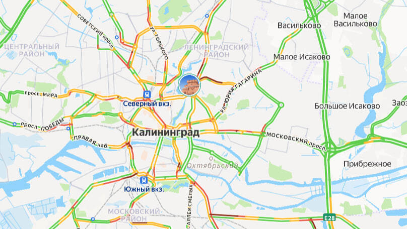 Калининград утром в пятницу, 6 марта, встал в пробках. Об этом говорят данные сервиса «Яндекс. Карты».