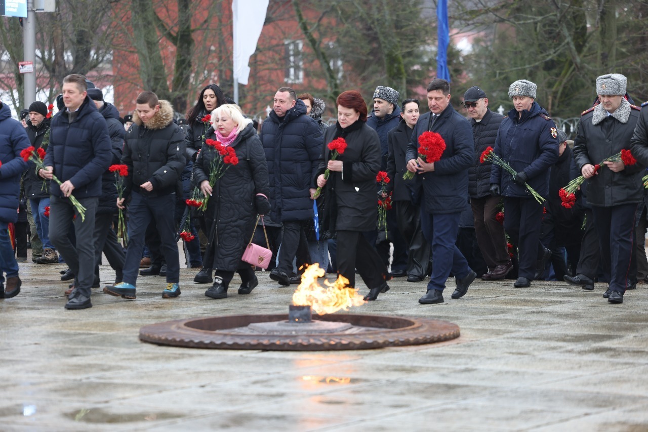 В Калининграде 23 Февраля отметили возложением цветов к памятнику 1 200 воинам-гвардейцам. В торжественном мероприятии в том числе поучаствовал председатель Законодательного Собрания Андрей Кропоткин.