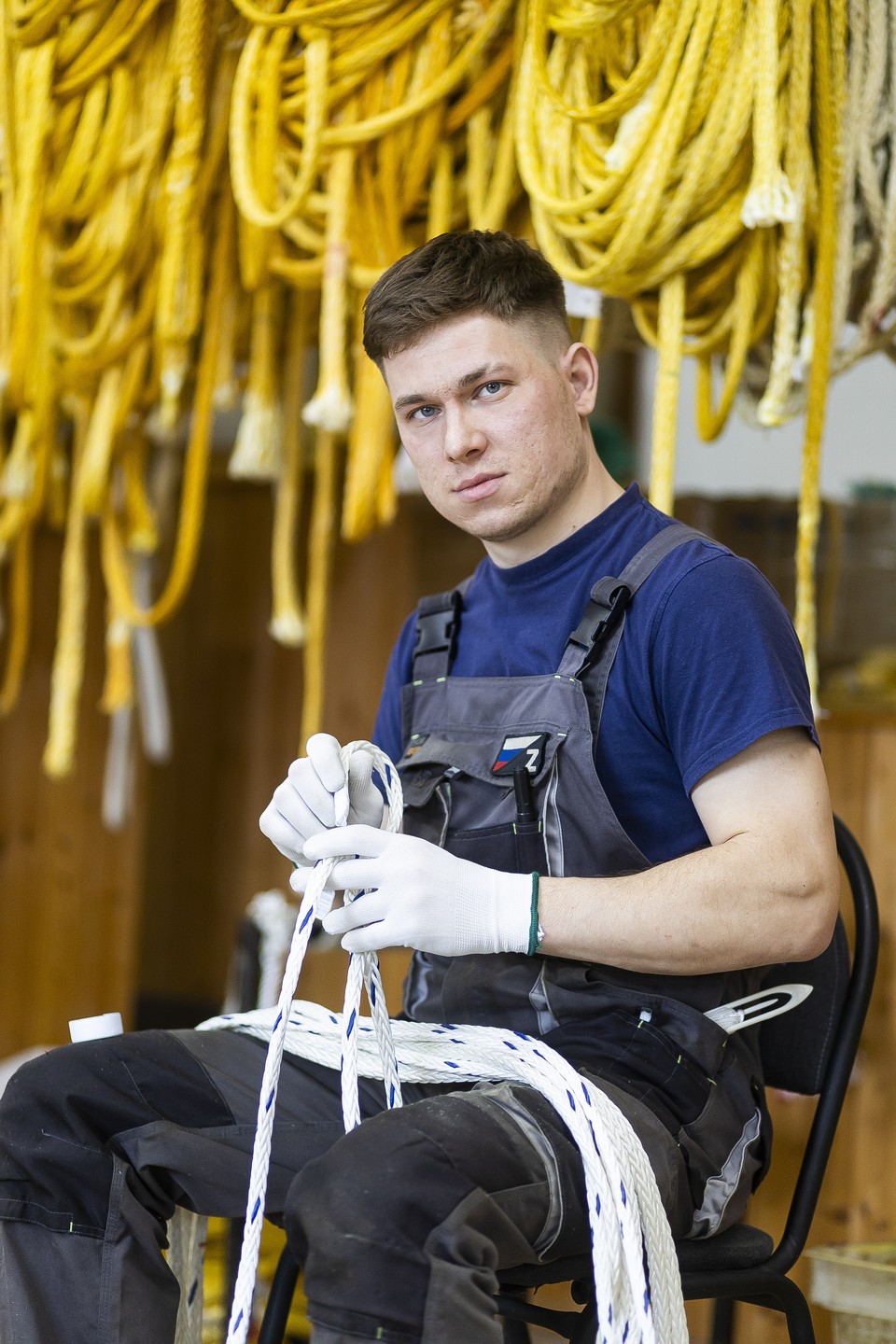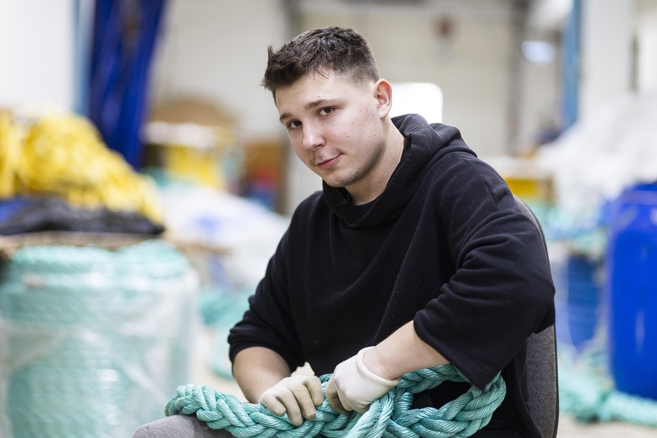 — Давно слышал об этом предприятии. Мне было интересно попробовать себя в чем-то новом, решил прийти сюда. И пришел, устроился. И я ни о чем не жалею. Мне здесь нравится. Нравится, что зарплату получаем в строго установленный день. Нравится, что коллектив дружный. Нравится, как из маленьких операций вырастает огромный трал, который затем отправляется на судно, помогает рыбакам делать свою работу в срок, красиво… Так что всё супер!