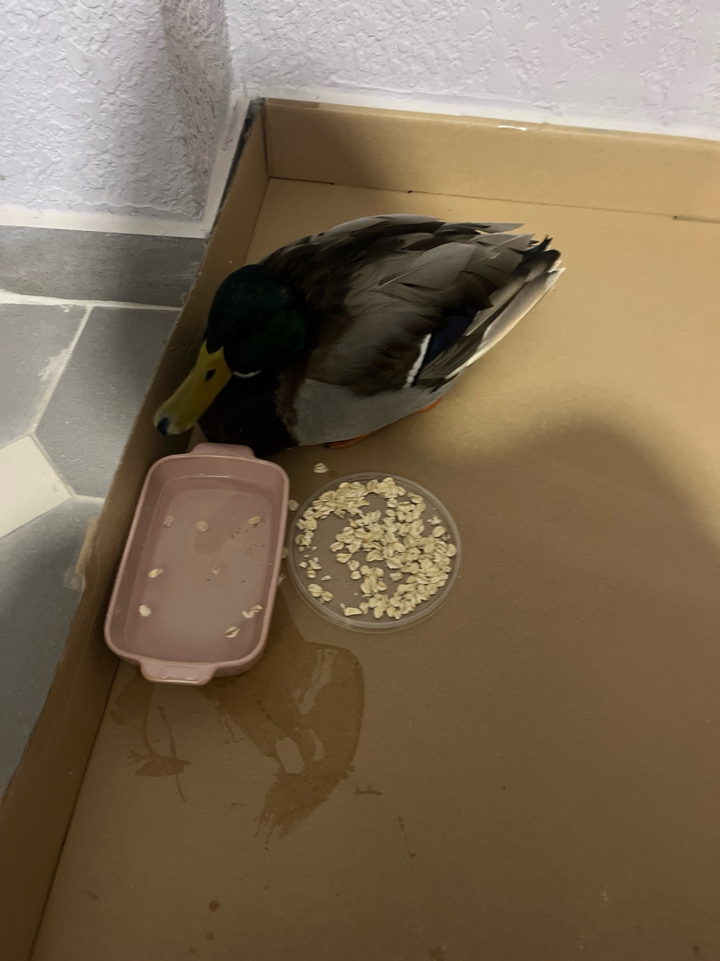 «Мы забрали его в квартиру, покормили овсяной крупой. Волонтёр потом селезня забрал. Сейчас вроде как с ним всё хорошо», — говорит москвичка.