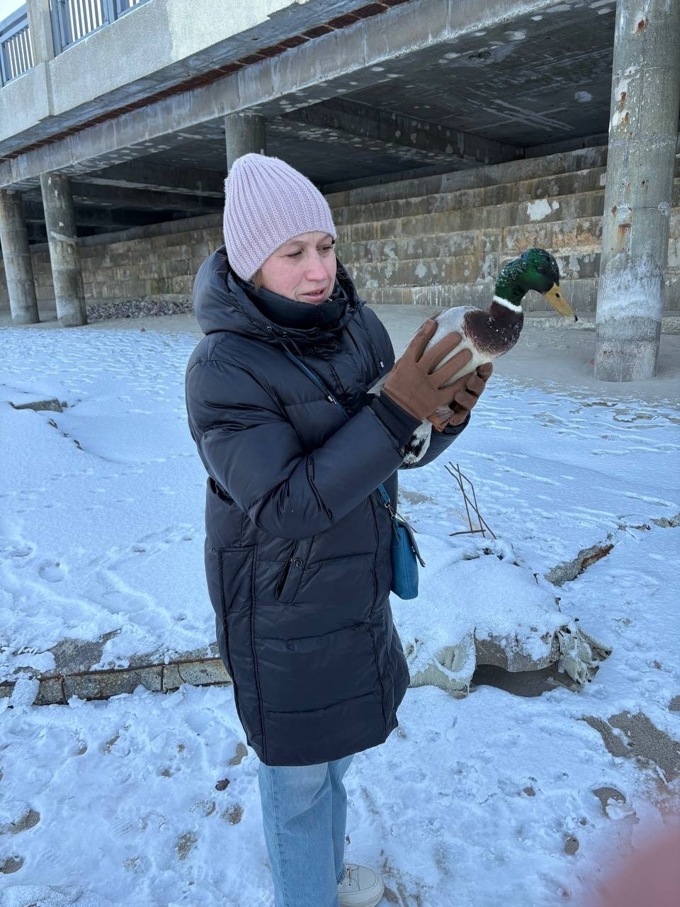 «Бежал со всех утиных лап ко мне»: туристка из Москвы спасла замерзающего на побережье в Светлогорске селезня (фото)