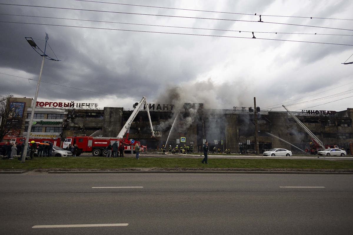 Пожарные начали разбирать конструкции ТЦ «Гиант» на Московском проспекте в Калининграде после ликвидации открытого горения.