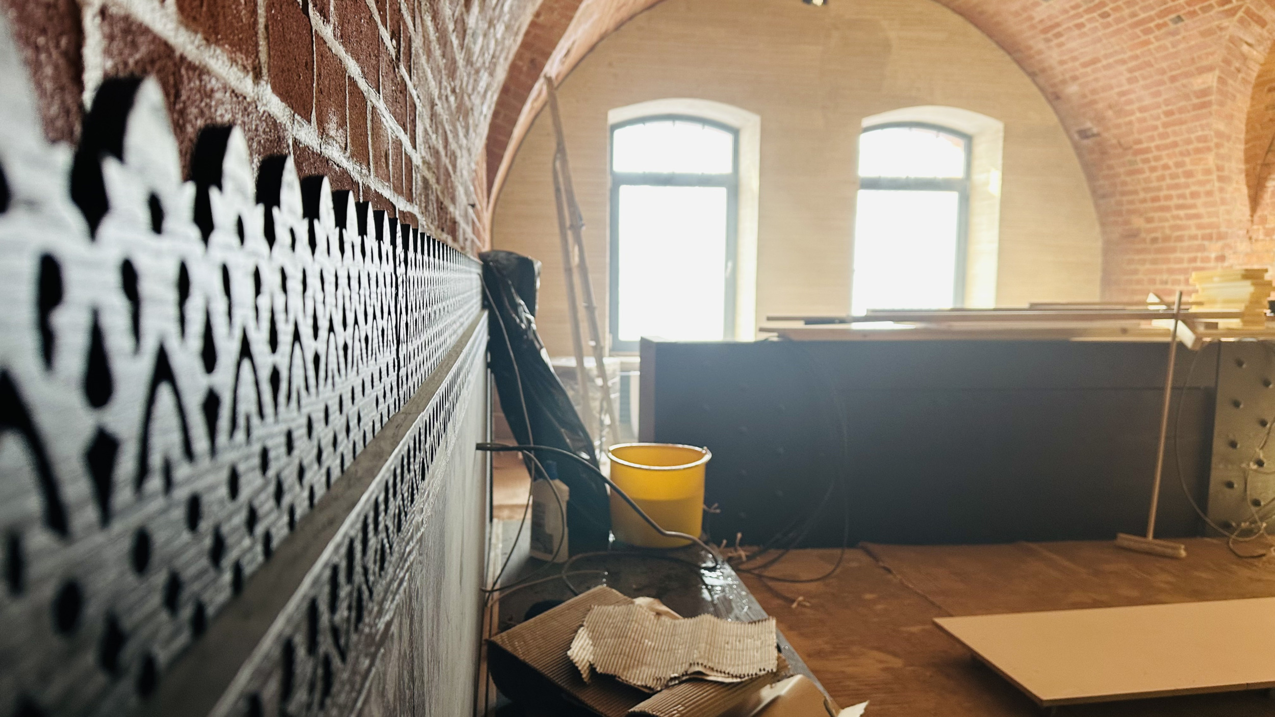 Параллельно шла кропотливая работа по спасению подлинных элементов конструкции, например, оригинальной кирпичной кладки. «Тысячи кирпичей прошли пескоструйную очистку, — прокомментировала соучредитель проекта, — За десятилетия часть стен была буквально оплетена корнями деревьев — их аккуратно удалили».