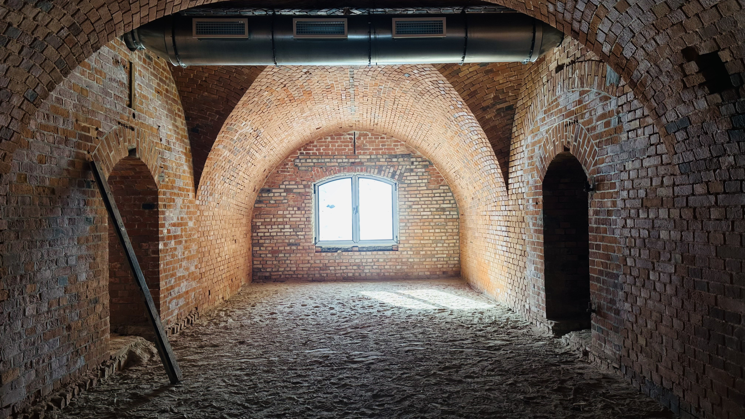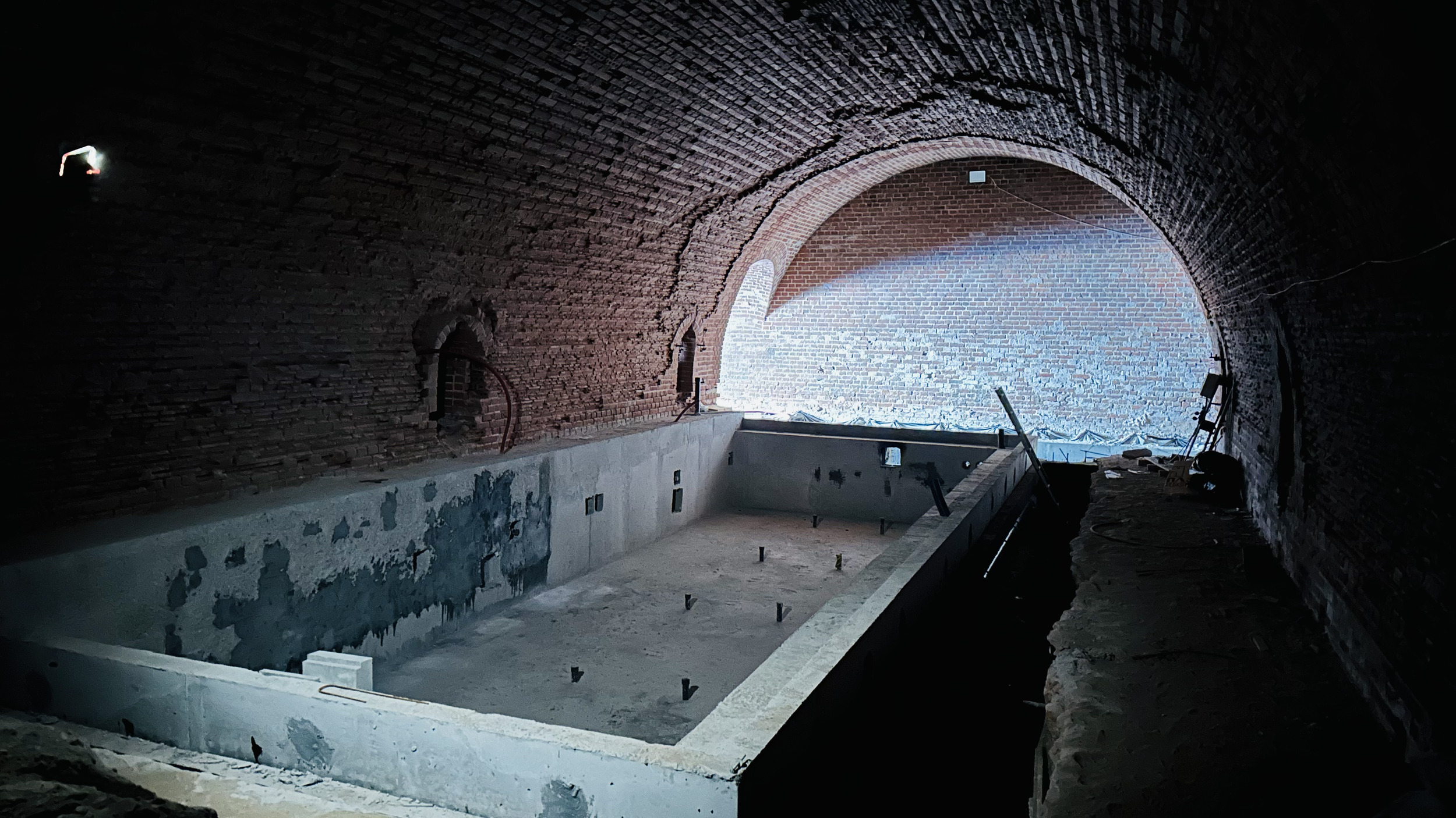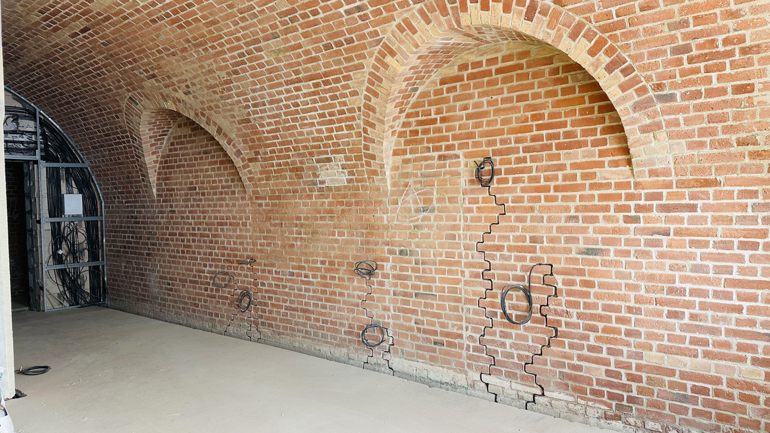 Получилось сохранить также входную группу, портал и колонны. Потолок центральной потерны очистили от многолетней копоти: пока форт стоял заброшенным, внутри нередко разводили костры и жгли покрышки.