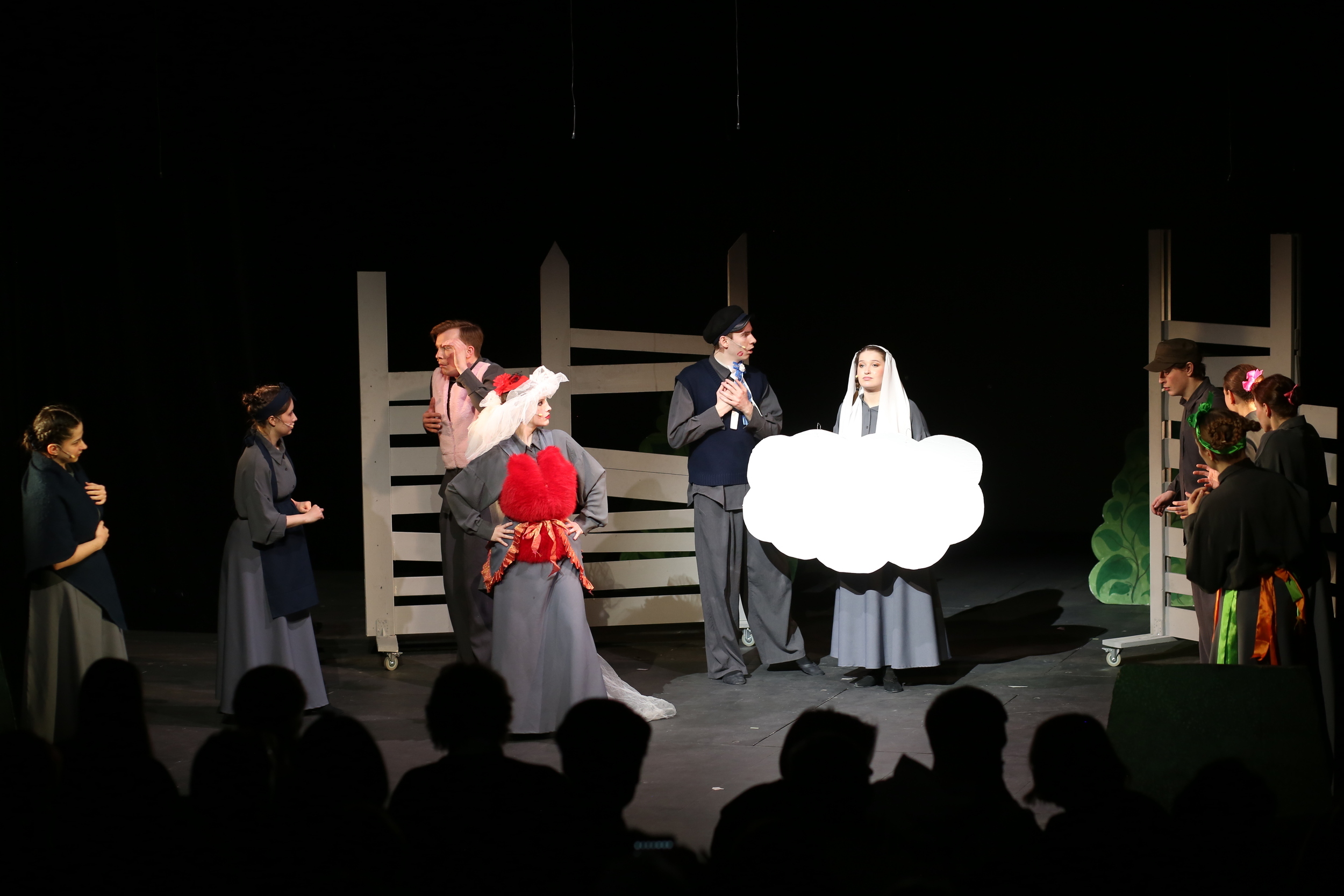 Вечером в среду, 11 февраля, в Калининграде показали необычный спектакль. На сцену, конечно, вышли артисты — но и в зале артисты, а вот обычных зрителей почти и не было. Это студенты училища имени Гнесиных на фестивале «Большой дебют» представили мюзикл «Женитьба Бальзаминова» по пьесе Александра Островского. На премеьере побывал «Клопс».