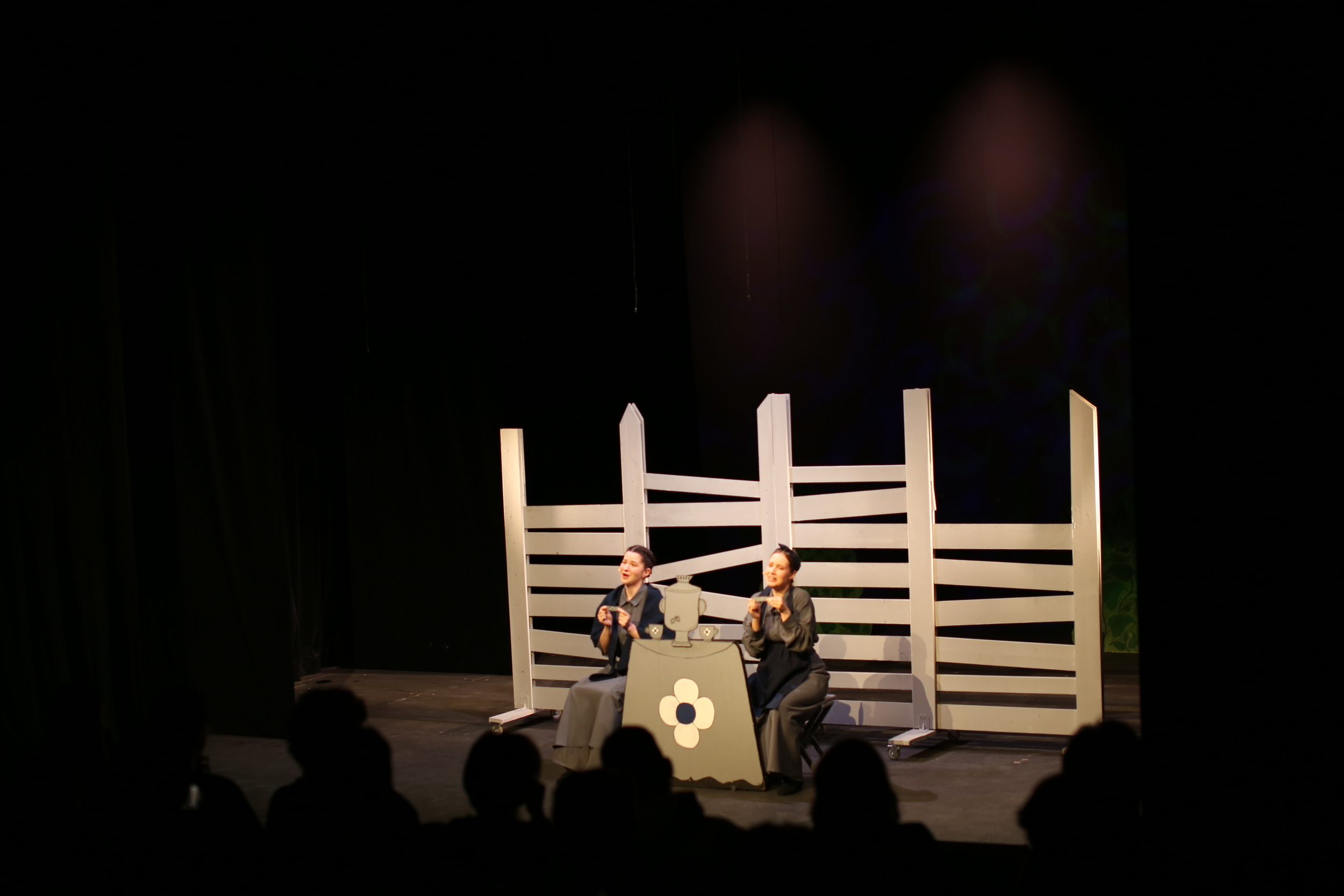 В первые мгновения это странно: худенькие девушки у картонного самовара изображают степенных мещанок старой Москвы. Даже вдвоём молодые актрисы размером примерно с одну Павлу Петровну из советской экранизации. Но это перестаёт быть проблемой, когда они начинают играть.