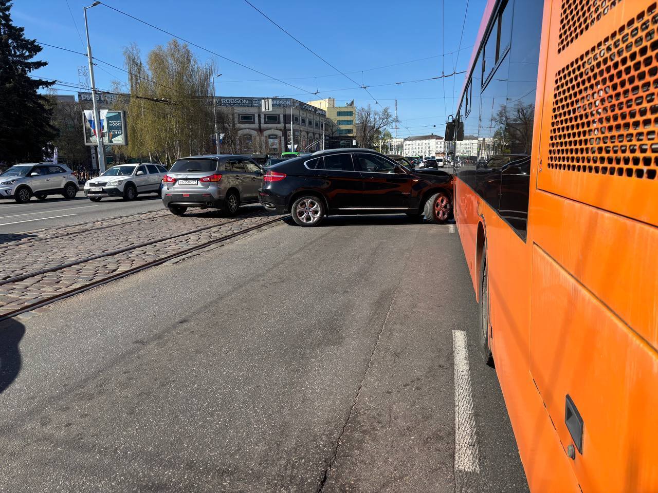 ДТП произошло в субботу, 18 апреля, недалеко от пересечения с ул. Театральной. Женщина за рулём BMW ехала в сторону ТЦ «Плаза». Она пошла на разворот и врезалась в автобус, который ехал в сторону площади Победы. В общественном транспорте пострадала 60-летняя пассажирка, которая упала с сидения — она получила ушибы.