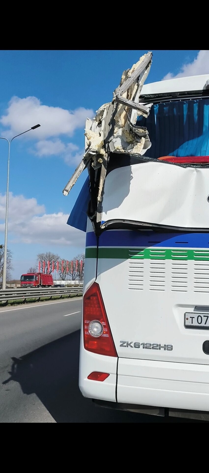 Люди уверяют: конструкция крана едва не пробила заднюю часть салона. «Ещё чуть-чуть — и он бы проломил головы людям», — рассказал собеседник «Клопс».