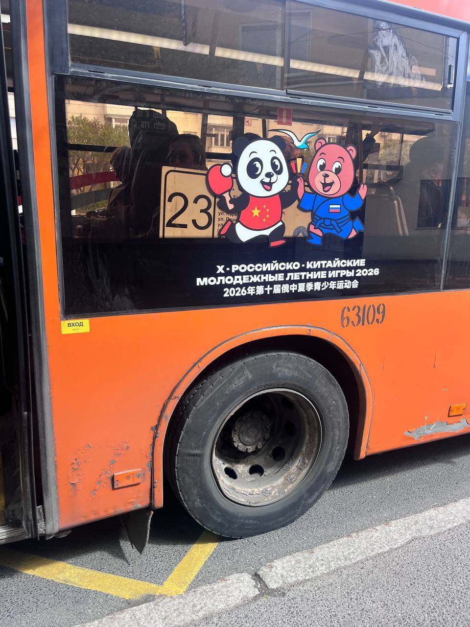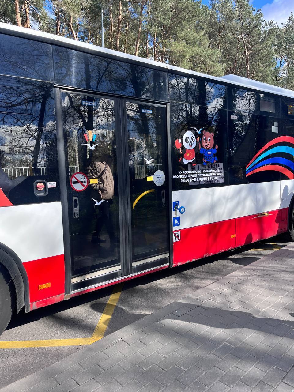 В Калининграде логотипы Российско-китайских игр закрыли на автобусах информацию об остановках