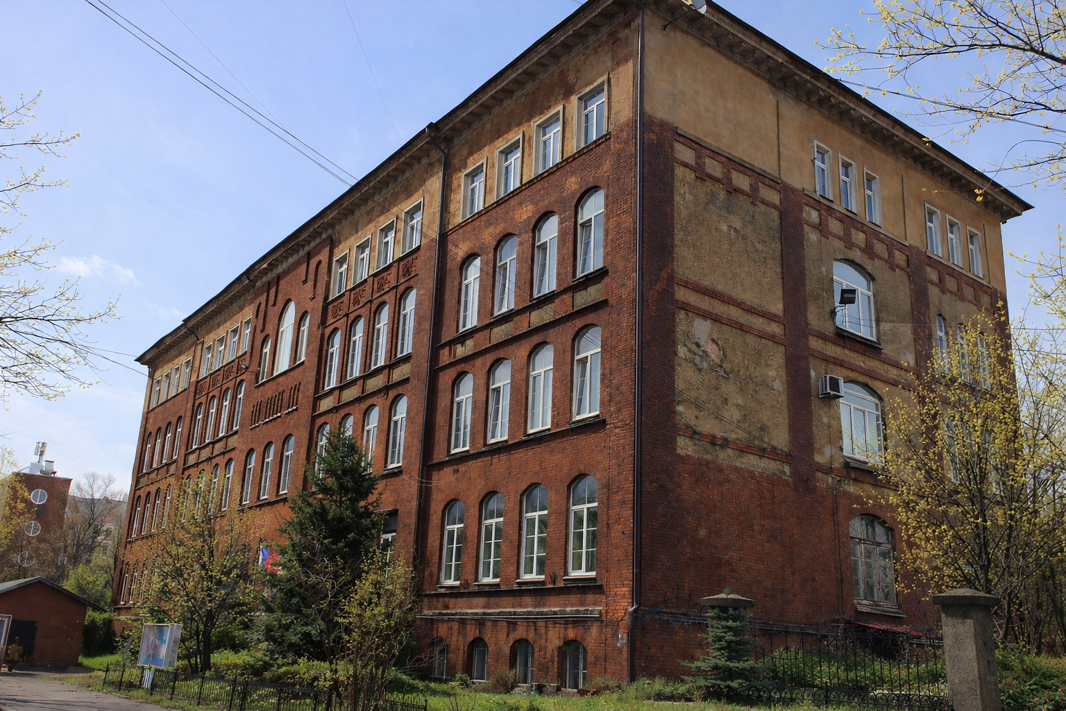 Корпус, в котором располагалась народная школа для мальчиков, построен в 10-х годах XX века. У четырёхэтажного дома декоративно оформленный фасад.