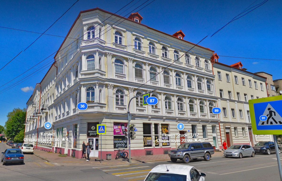 К концу XIX века ситуация изменилась: теперь в этом месте пролегла одна из главных улиц города — Кёнигштрассе (современная Фрунзе). А на ней развернулось активное строительство. Дом, о котором идёт речь, возвели между 1890 и 1895 годами — он стоял на пересечении с Аугусташтрассе (сейчас улица Грига). Мимо ходили конки, а с 1895 года — городские трамваи.