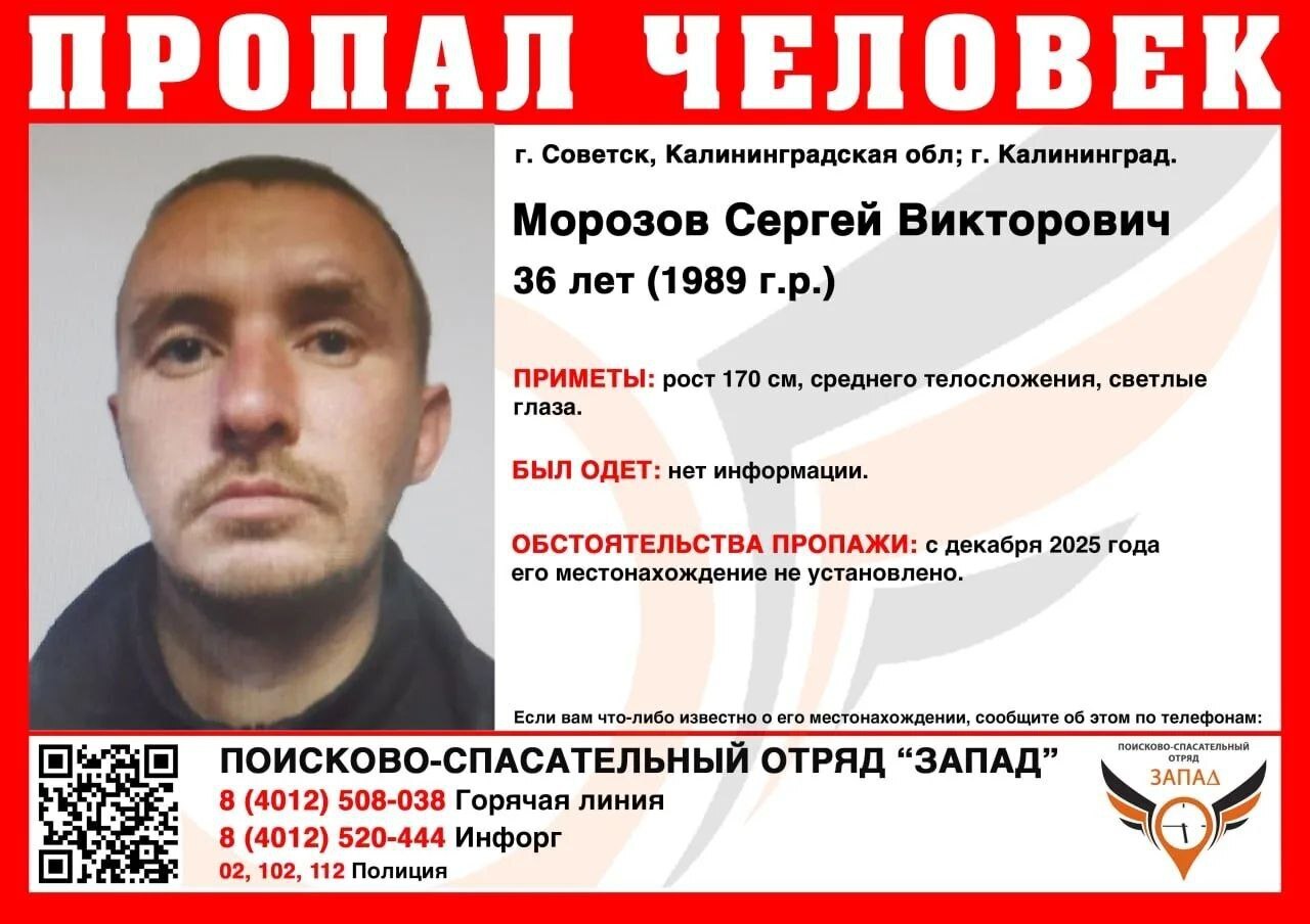 Мужчина — житель Советска. Он не выходит на связь с декабря 2025-го. Его местонахождение не установлено.