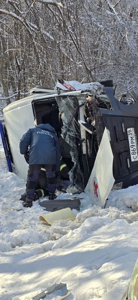 Авария произошла в понедельник, 16 февраля, в 11:05 в районе посёлка Ульяновка Багратионовского района. По предварительным данным, произошло лобовое столкновение, спровоцированное 31-летней женщиной за рулём автомобиля Mazda. Автомобиль скорой перевернулся, в машине выбиты лобовое и боковые стёкла.