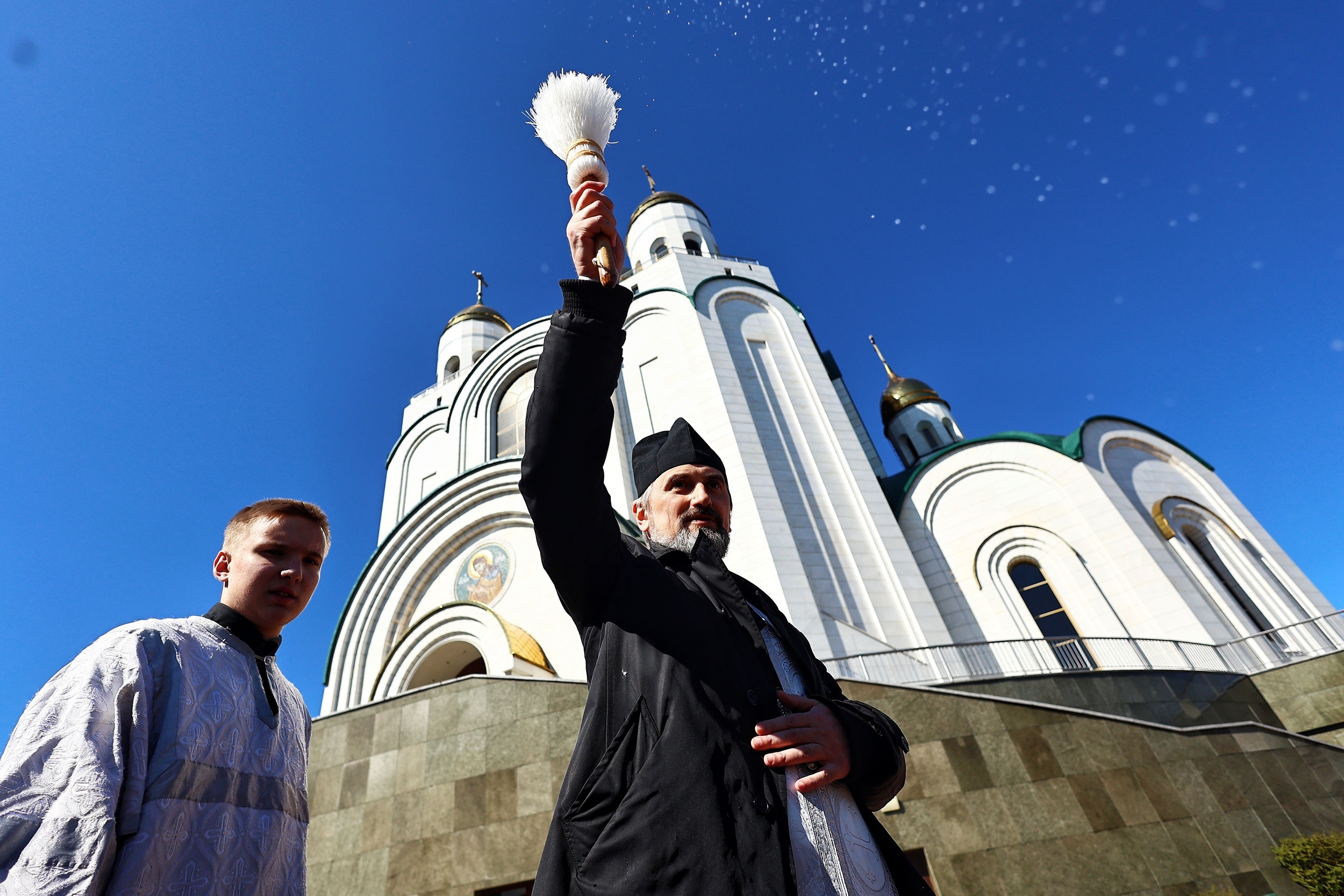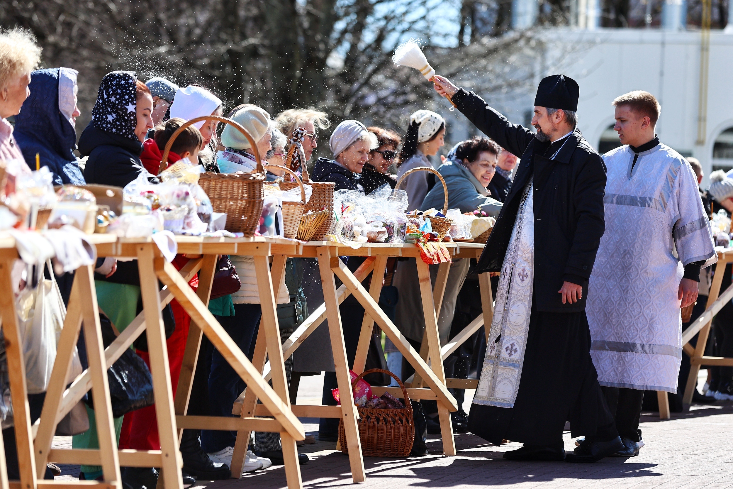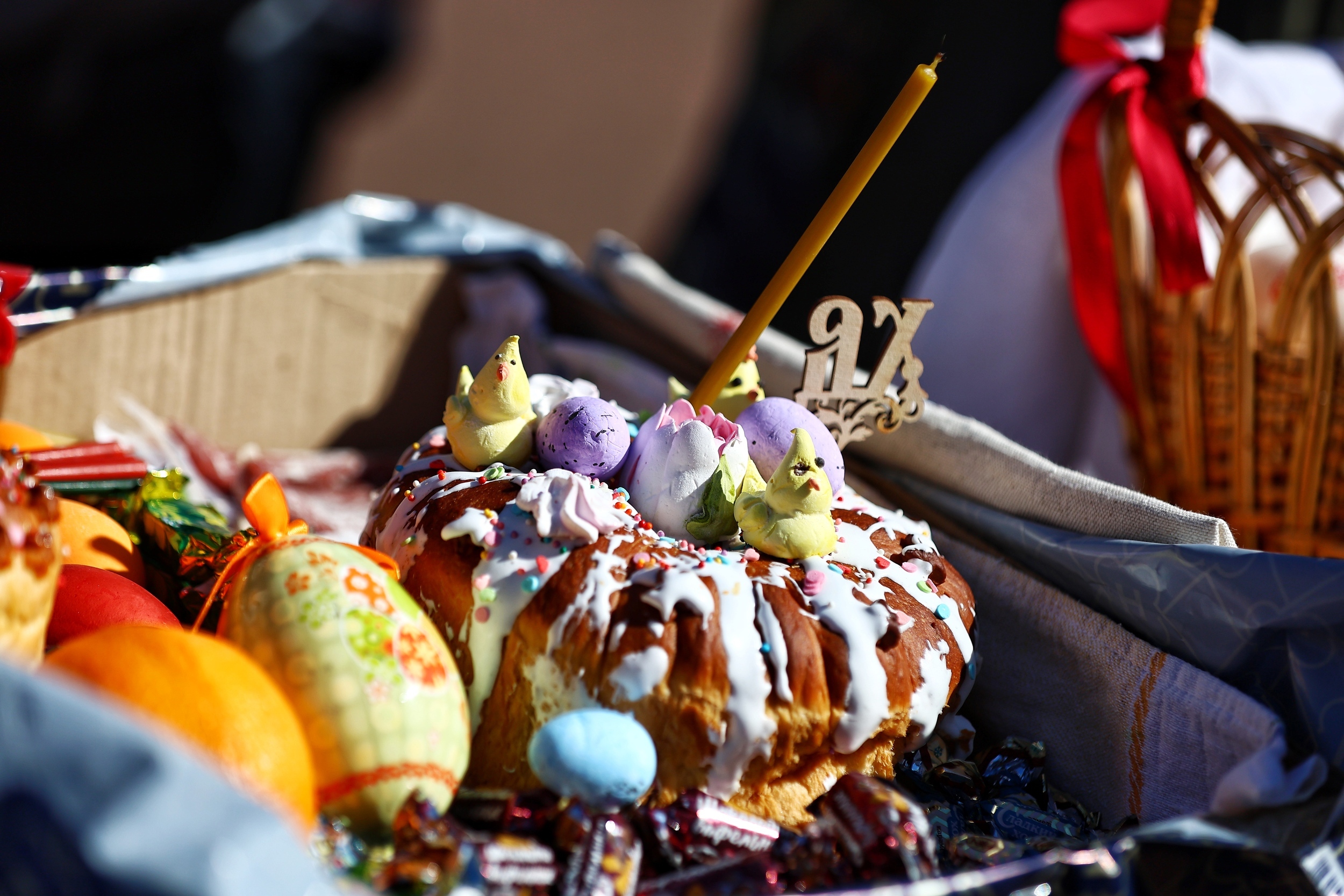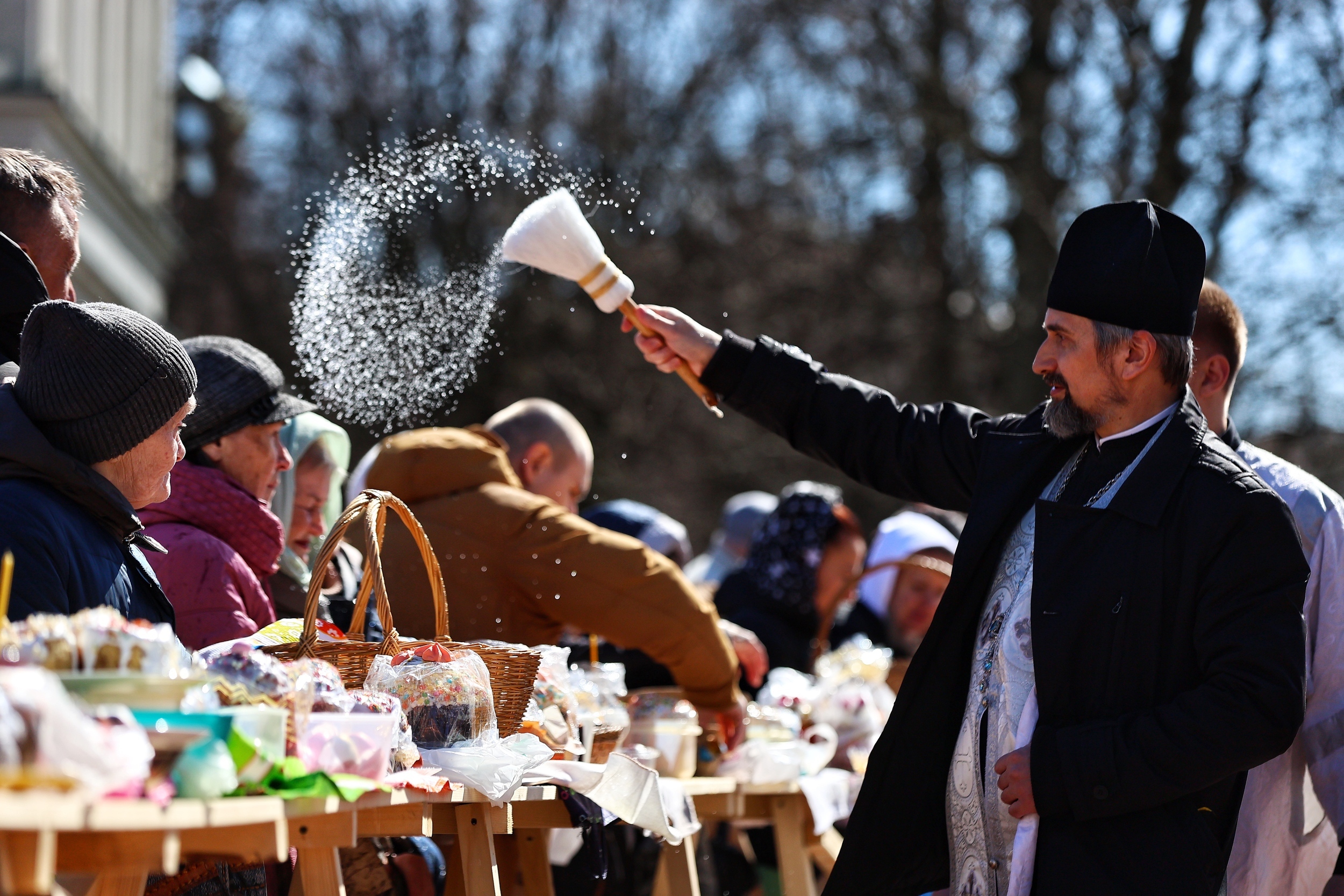 В преддверии Пасхи, которая в 2026 году отмечается 12 апреля, в калининградских храмах прошло освящение снеди. Традиционно прихожане принесли с собой куличи и крашеные яйца. Как прошло освящение в Кафедральном соборе на площади Победы, запечатлел фотограф «Клопс» Александр Подгорчук.