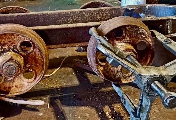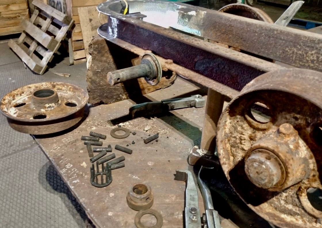 Ручки вагонетки изготовили по старым фотографиям — получилось очень удобно. Кроме того, мастера подварили шпалы, выпрямили помятые рельсы и подобрали утраченные болты.