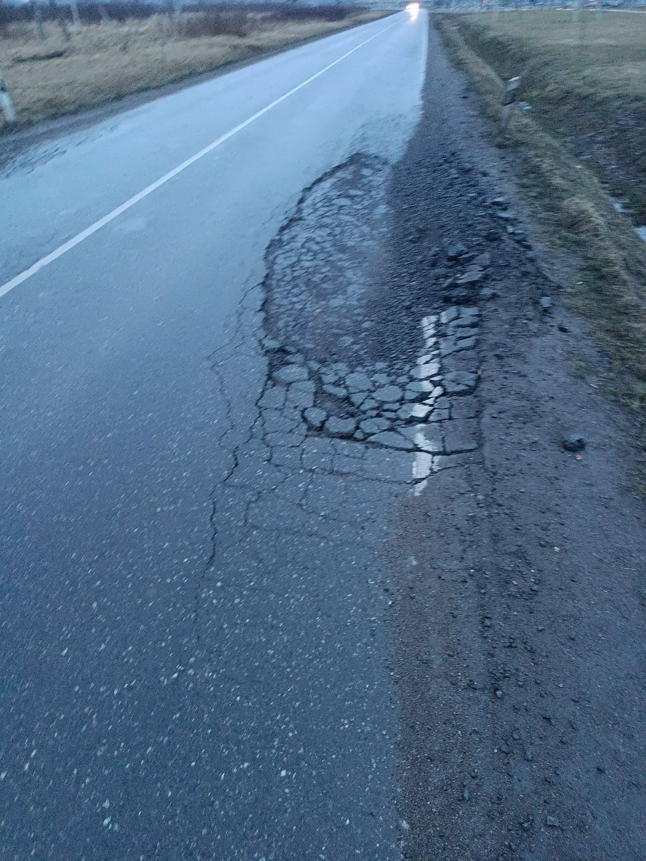 Очевидец добавил, что проезжая часть узкая, нет ни заметной обочины, ни тротуаров, ни освещения. В центре посёлка установили детскую площадку, но добраться до неё — задача не для слабонервных. По словам местных жителей, участок дороги, который ремонтировали несколько лет назад, уже начинает разрушаться.