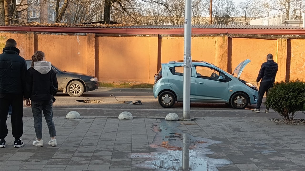 На одной из крупных улиц Калининграда сразу пять машин пробили колёса, угодив в «оттаявшую» после зимы яму (фото)