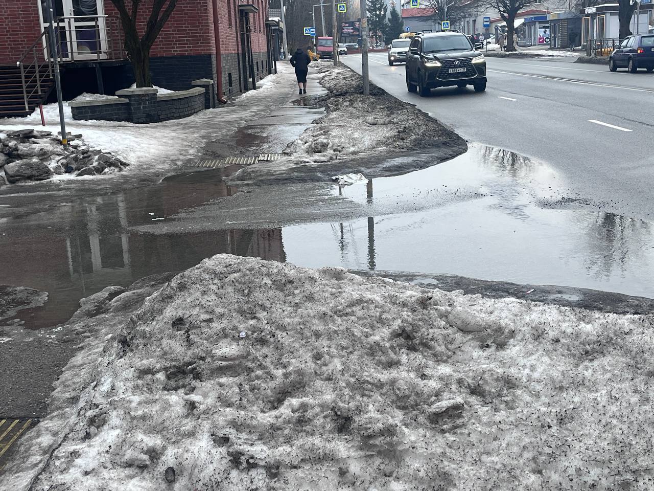 С утра пятницы, 27 февраля, подтоплен тротуар и часть дороги в районе дома №33–37. По словам очевидцев, из-под асфальта бьёт фонтан. Вода разливается по тротуару и растекается по проезжей части.