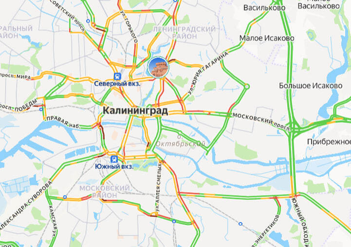 В центре проехать трудно: карта пробок в Калининграде на утро среды