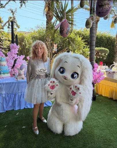 Алла Пугачёва отмечает Пасху вместе с огромным голубоглазым зайцем или кроликом, в окружении больших яиц, подвешенных на пальмах. Фотографии Примадонна выложила в соцсетях в понедельник, 13 апреля.