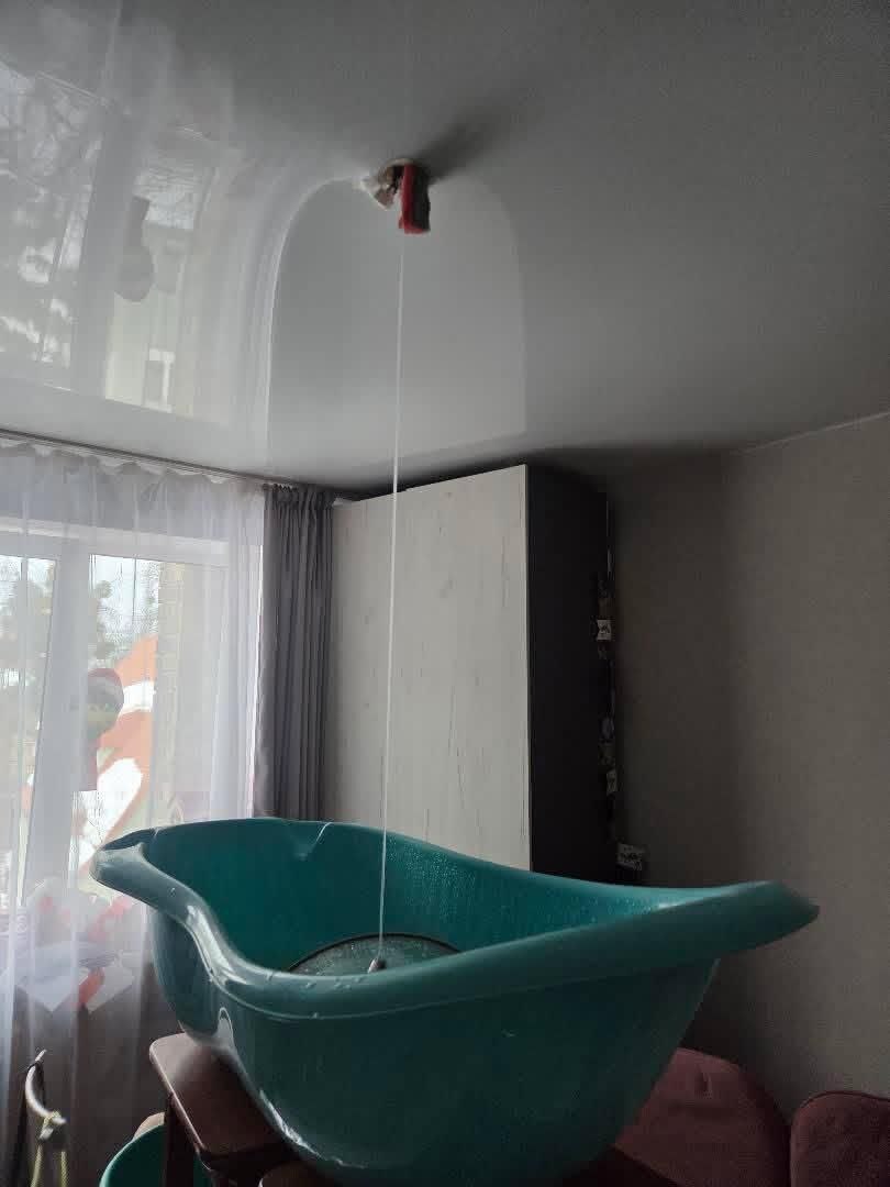 В одной из квартир жилого дома на ул. Шиллера в Калининграде с потолка струёй течёт вода. Об этом «Клопс» сообщила владелица жилья, которая уже сутки пытается хоть как-то минимизировать вред от потопа.