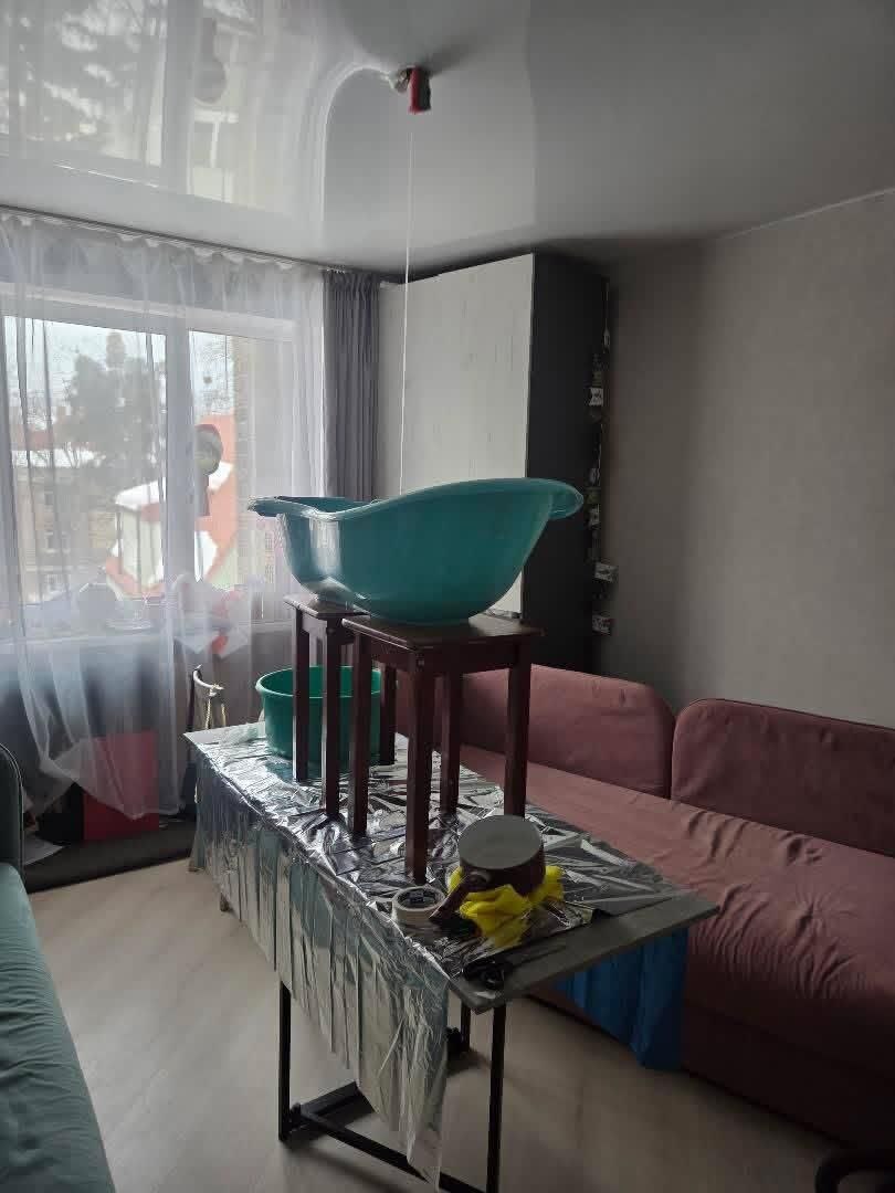 По её словам, за ночь ситуация усугубилась: набралось около 20 литров воды, начала мокнуть стена, а проводка стала коротить, что создаёт угрозу безопасности. Чтобы хоть как-то собрать воду, девушка подставила под струю стол, на котором стоит ванна. Из-за трёхдневных выходных ни одна из инстанций не отвечает на звонки.