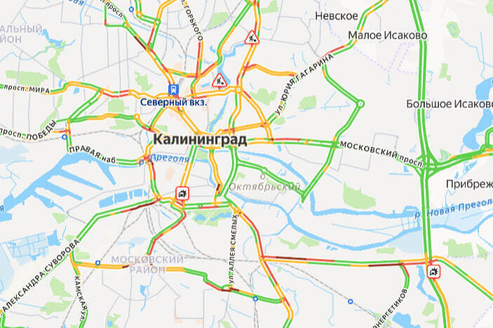 Калининград утром в пятницу, 24 апреля, встал в пробках. Об этом говорят данные сервиса «Яндекс. Карты».