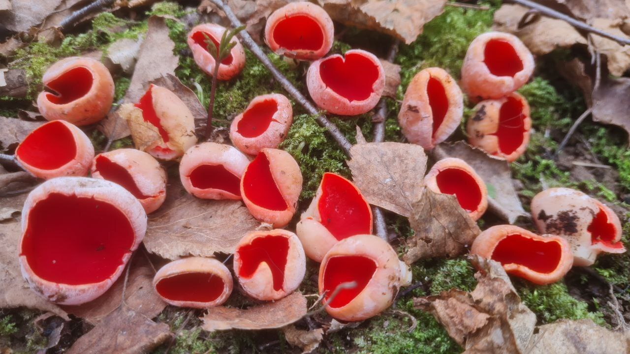 Помимо морального удовлетворения от ощущения наведённой чистоты, грибники получили и материальное лесное «спасибо». На прогретом солнышком валежнике показались первые алые чашечки саркосцифы, которую ещё называют чашей эльфов.