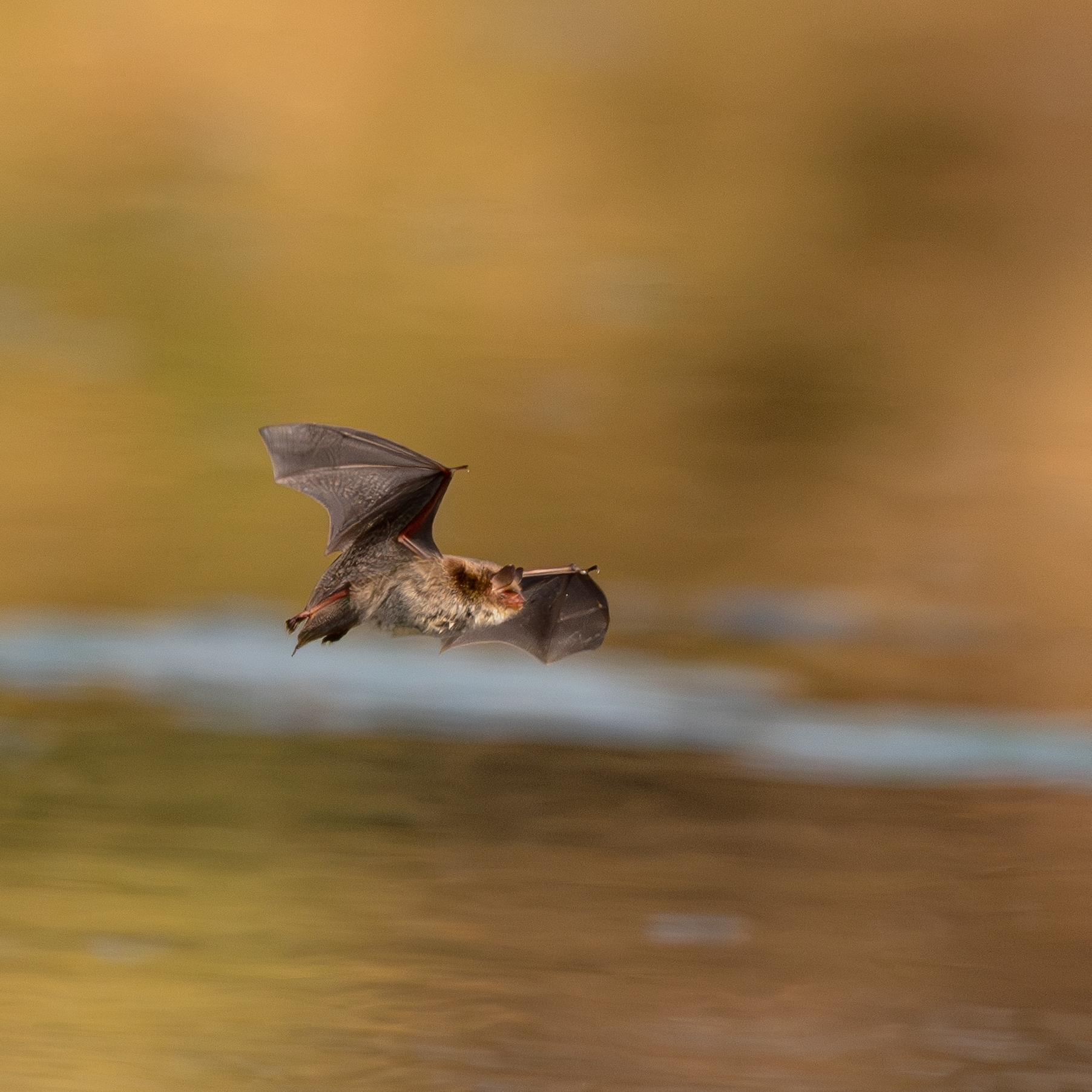 Оказалось, что круги над водой «наворачивала» летучая мышь. Какое-то время она демонстрировала своё мастерство полёта, потом ненадолго пристроилась к ветке кустарника. А после снова вспорхнула и даже осмелилась приблизиться к людям.
