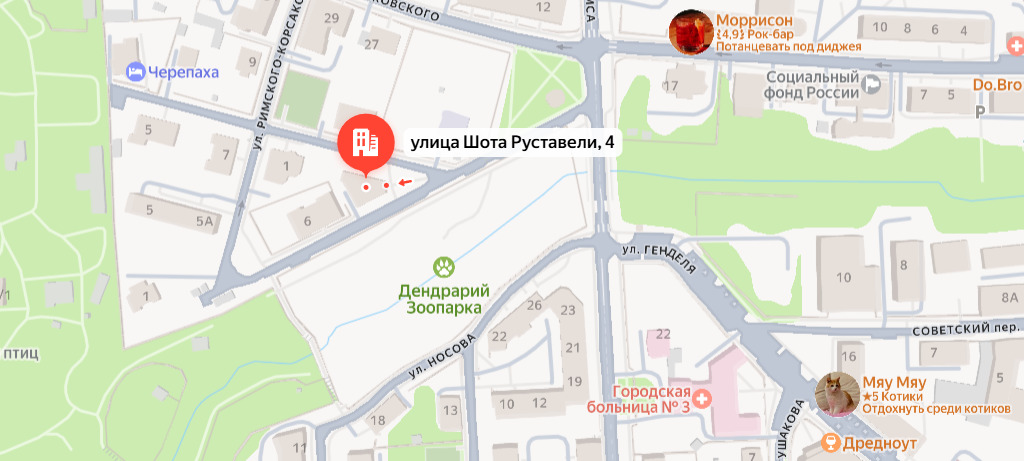Сейчас этот дом можно найти, если пройти по улице Шота Руставели от пересечения с проспектом Мира в сторону Зоологического тупика. В начале это был престижный район Хуфен, застроенный доходными домами и виллами для состоятельных горожан. Улица, на которой расположен дом со львом, тогда называлась Гетц-штрассе.