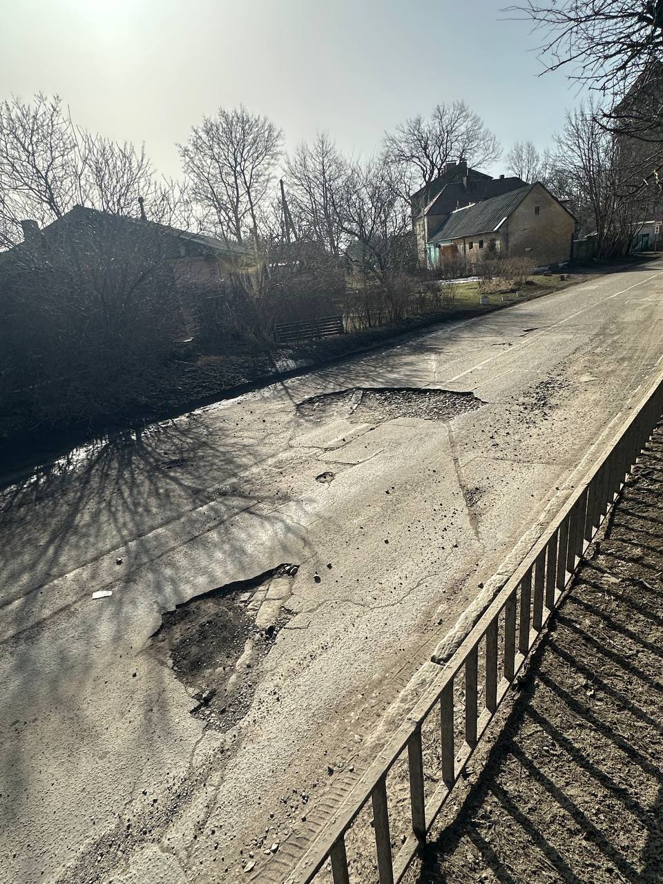 По словам жителей, после схода снега дорожное покрытие разрушилось настолько, что местами обнажилась старая брусчатка, которая уже десятилетиями лежала под асфальтом. Местные шутят, что «снег съел асфальт до культурного слоя».