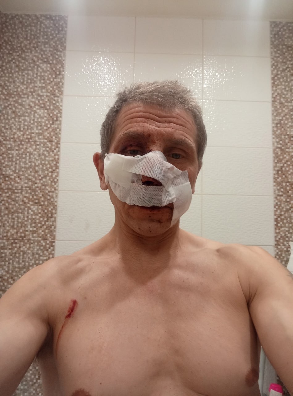 Александр говорит, что сейчас он похож на чудовище Франкенштейна. Нос был почти откушен, порваны веки, щека, губа и рука, вырван здоровый зуб. В общей сложности мужчине наложили около 23 швов, назначили перевязки. Поначалу он отказался от госпитализации, но уже через день почувствовал, что состояние ухудшилось — на скорой его привезли в больницу, где он сейчас лечится в связи с воспалительным процессом. Пострадавший с детства имеет инвалидность второй группы.
