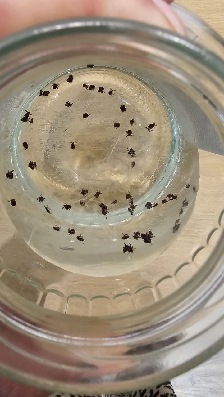 То же самое вероятно, если через грязные руки жидкость попадёт на продукты или слизистые глаз. Инфекция передаётся и с посудой, и даже с вдыханием паров загрязнённой воды, куда помещены (как на фото) клещи.