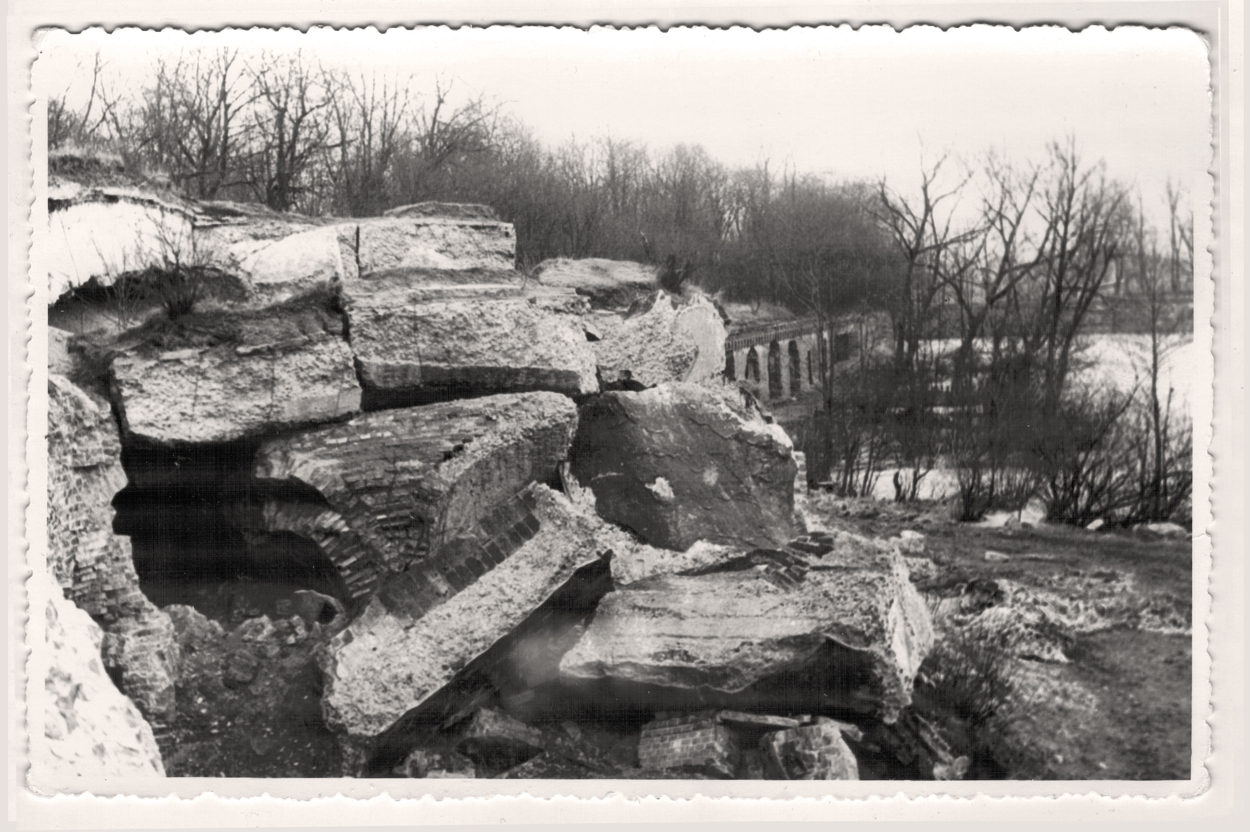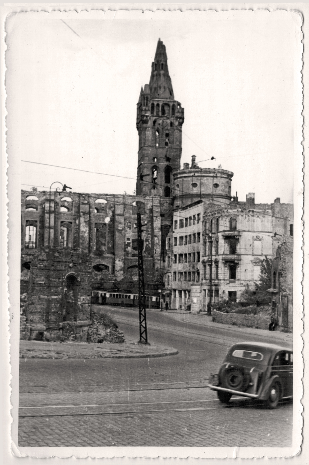 Но другие явно сделаны раньше 70-х годов: на одной карточке — остатки стен королевского замка Кенигсберга, снесённого в 60-е. Другая, где изображены руины довоенного здания, подписана с обратной стороны карандашом: «1948».