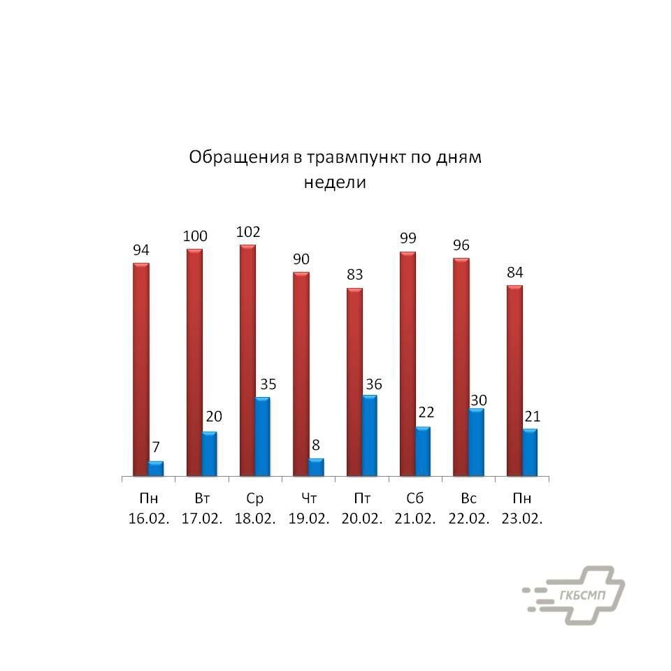 В течение прошедшей недели в отделение неотложной травматологии и ортопедии БСМП обратился 621 человек.