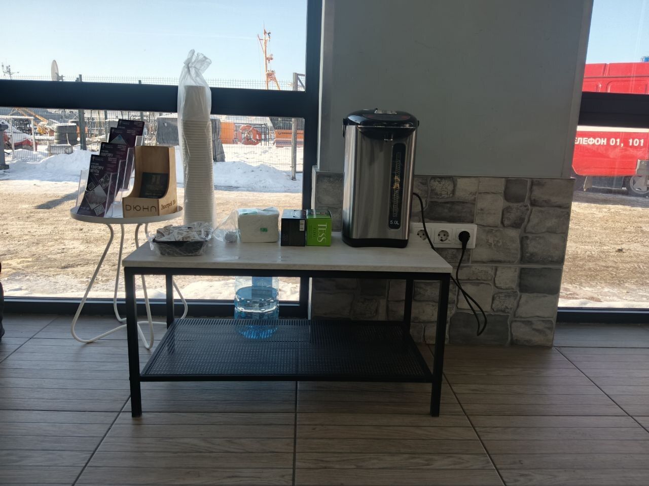 Ожидающим рейса в Балтийске организовали пункт с бесплатным горячим чаем. По словам пассажиров, паром пришвартовался не к основному причалу на Балтийской косе, а в месте, куда обычно прибывают катера.