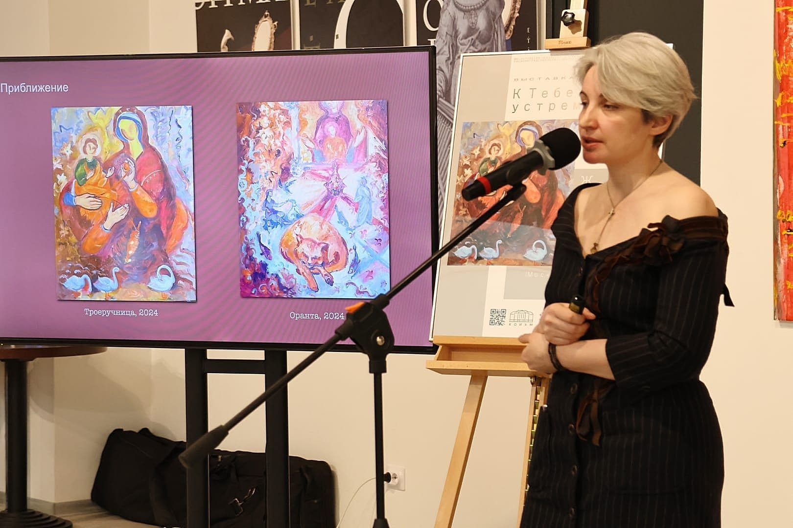 В работах представлены традиционные сюжеты — гостеприимство Авраама, огненная колесница пророка Ильи, образы Оранты, Троеручицы и святых. Их красоту и сакральность автор передаёт, переосмысливая канон языком современного искусства.