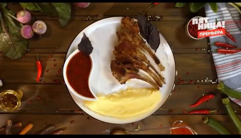 Потребуется каре баранины из спинной части. Мясо тщательно зачищают между рёбер: снимают плёнку, жировую ткань и все лишние элементы, а затем нарезают порционно — по одному ребру.