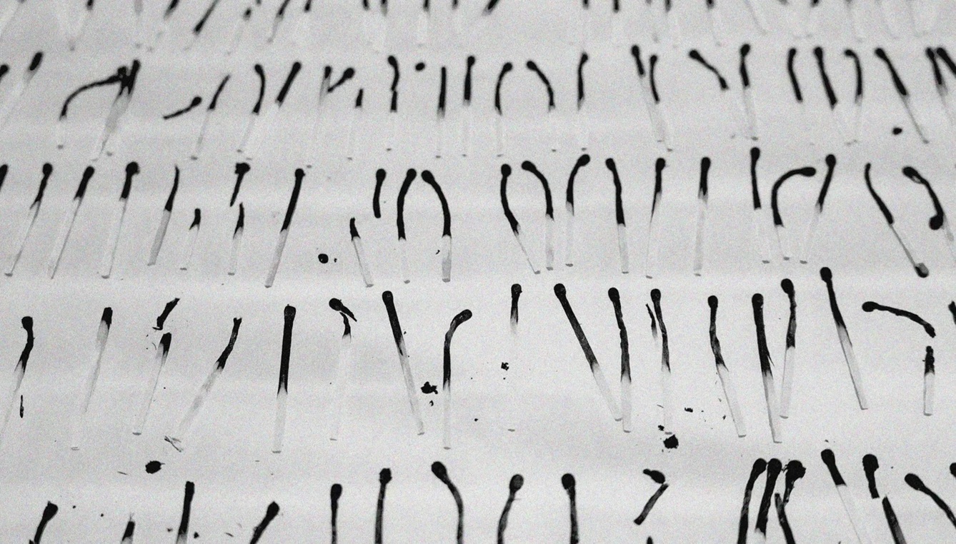 Рядом с проекцией находится витрина со сгоревшими спичками — «материальная партитура беззвучного хора». Это новое видение проекта «Уроки дыхания. Хор», представленного в музее PERMM в 2022 году. Там героиня дыханием спасала пламя спички на фоне сосен. «Сотни сгоревших спичек в витрине рождали беззвучный хор во время монтажа — пространство замедления среди тревоги», — объясняют авторы.