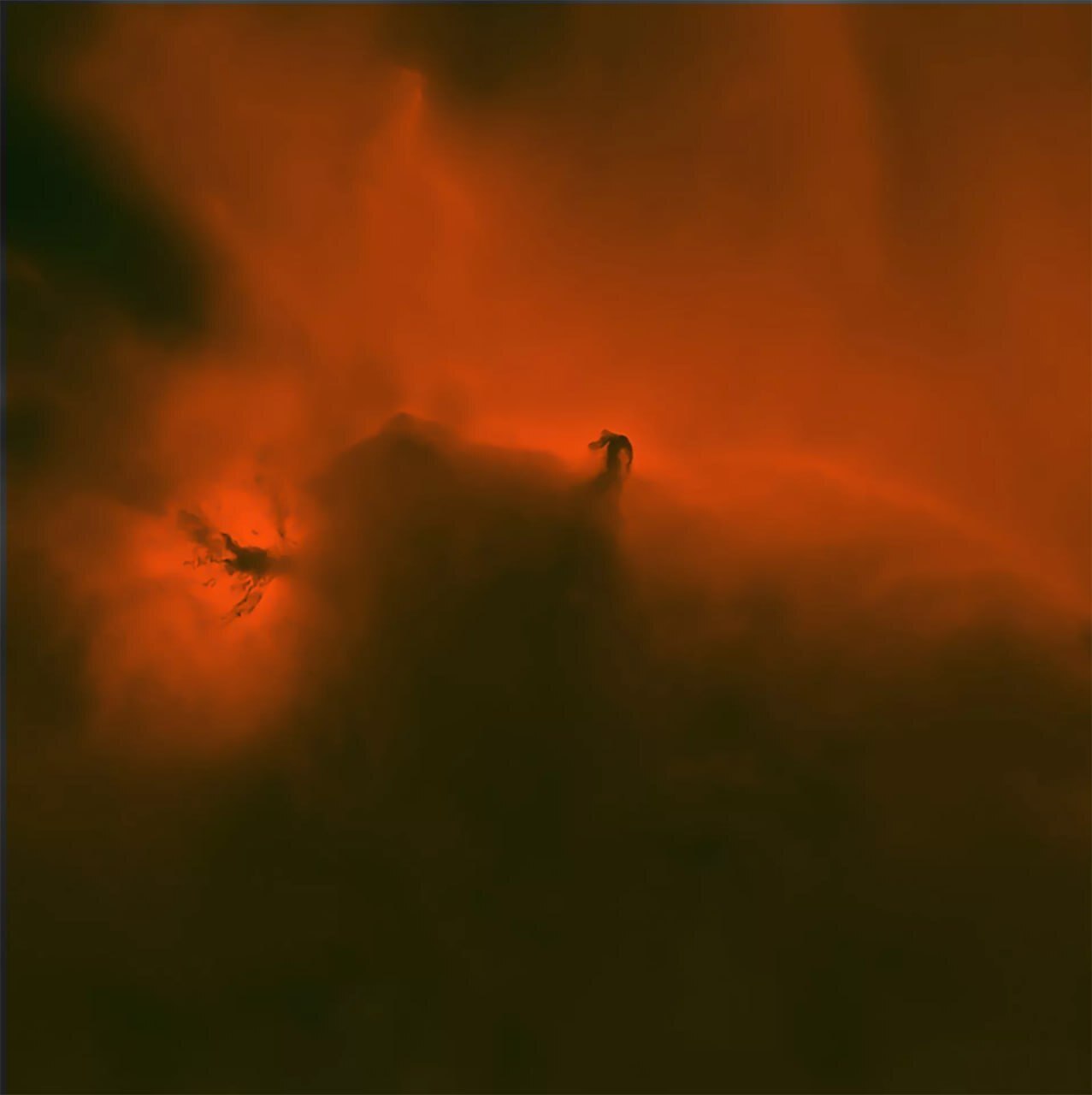 «На его фоне туманность выглядит скромно, но не стоит обманываться — её поперечник составляет около трёх с половиной световых лет, то есть сопоставим с расстоянием от Солнца до Альфы Центавра. Масса туманности тоже впечатляет — по разным оценкам она может достигать 250 масс Солнца! <…> Прямо сейчас за тёмной завесой этой туманности активно протекают процессы звездообразования», — рассказал руководитель астрономического сообщества вуза Алексей Байгашов.