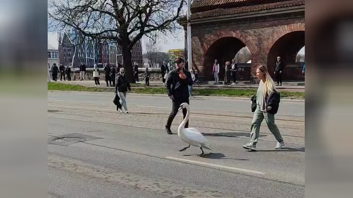 Как именно лебедь попал на проезжую часть изначально, точно не известно. На кадрах видео, которые сделали очевидцы происшествия, заметно, как он бежит вдоль трамвайных рельсов среди автомобилей, тяжело пытается взлететь, но бьётся о провода и снова падает на асфальт.