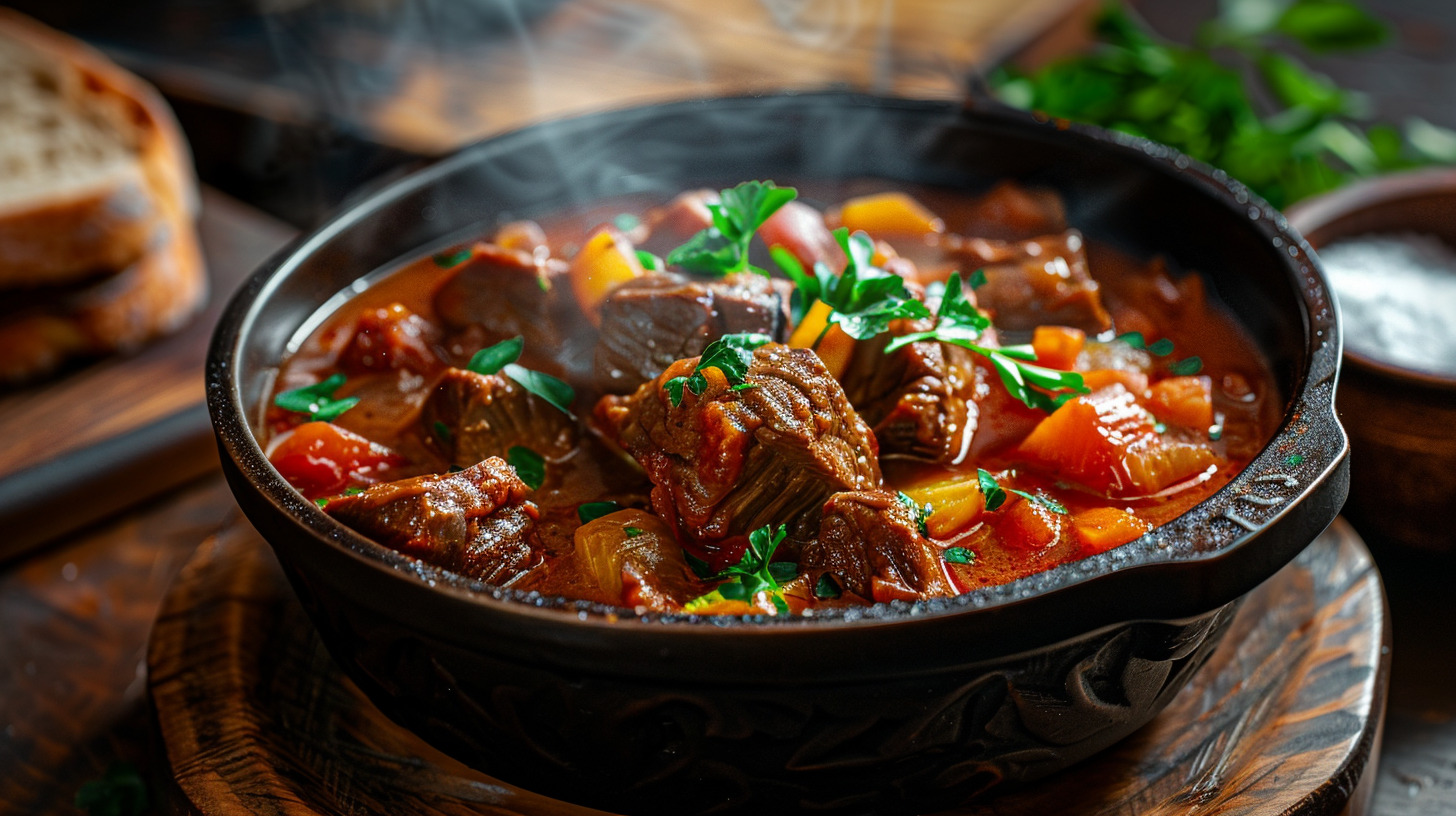 Гуляш — классика обеденного стола, так как в нём сочетаются нежное мясо, тушёные овощи и томатный соус. Рассказываем, как приготовить визитную карточку венгерской кухни так, чтобы все домочадцы трижды попросили добавку.