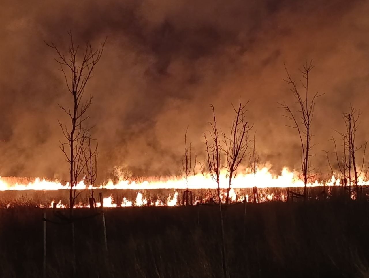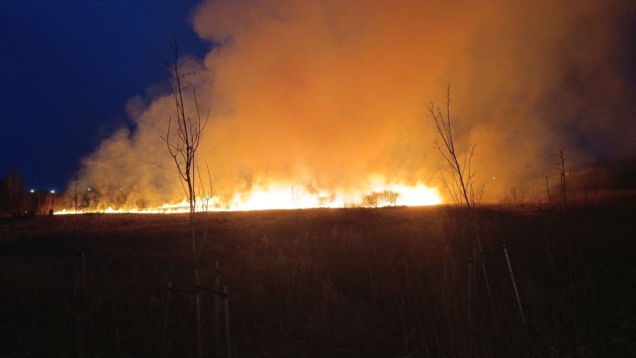 «Горит поле, пламя идёт в сторону Большой Окружной, была угроза перехода огня на жилые дома и гаражи, пожарные устранили этот риск. В настоящее время угрозы нет», — прокомментировали «Клопс» ситуацию в региональном МЧС.