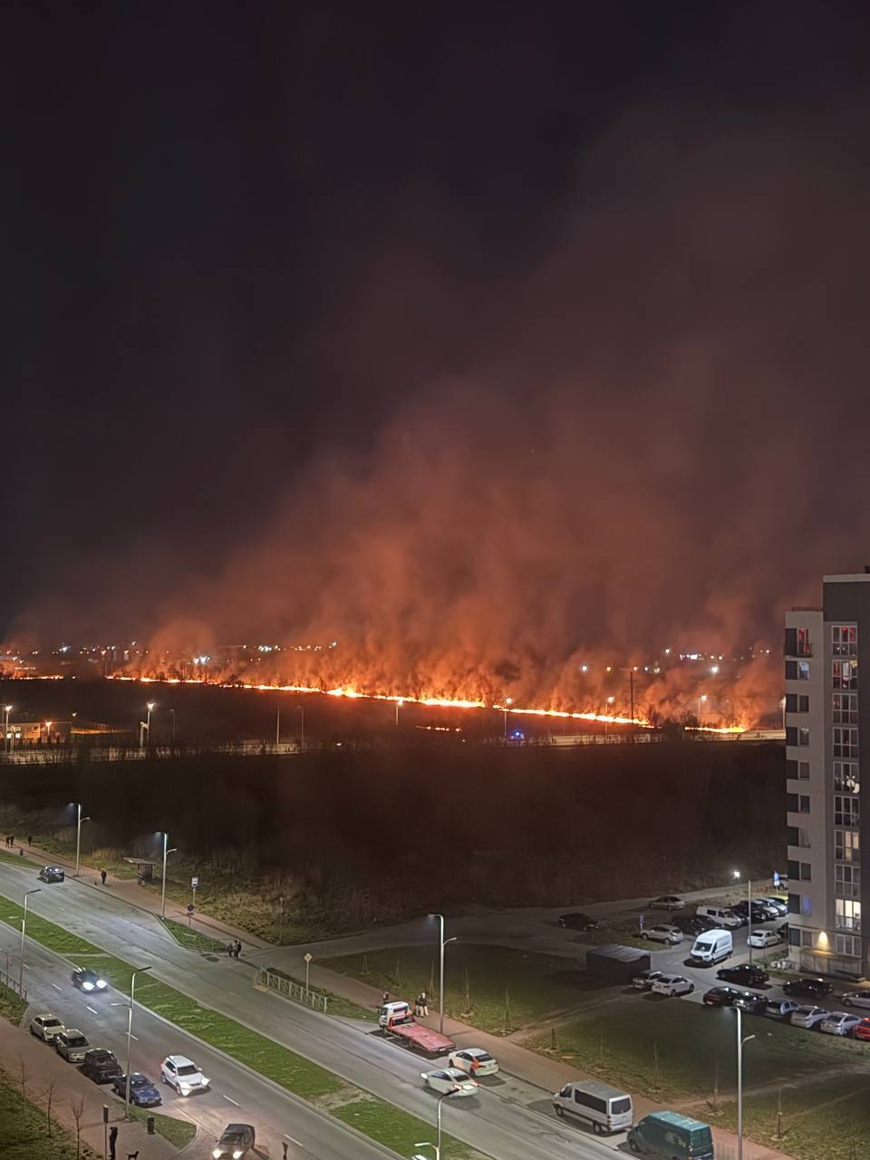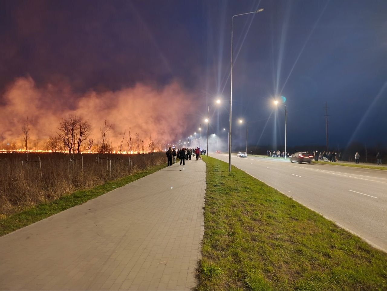 По словам местных жителей, огонь появился около 16 часов. Стена огня подбиралась к торговому центру «Балтийский пассаж». На месте работали сотрудники полиции и пожарные.