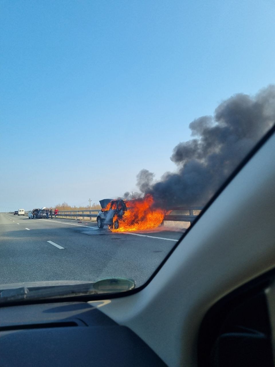 Горящую машину заметили в субботу, 28 марта, около 15:40, недалеко от опоры ЛЭП «Забивака». Другие подробности не сообщаются. О пострадавших информации пока нет. Скорой, полиции или пожарных на месте происшествия на момент публикации не было.