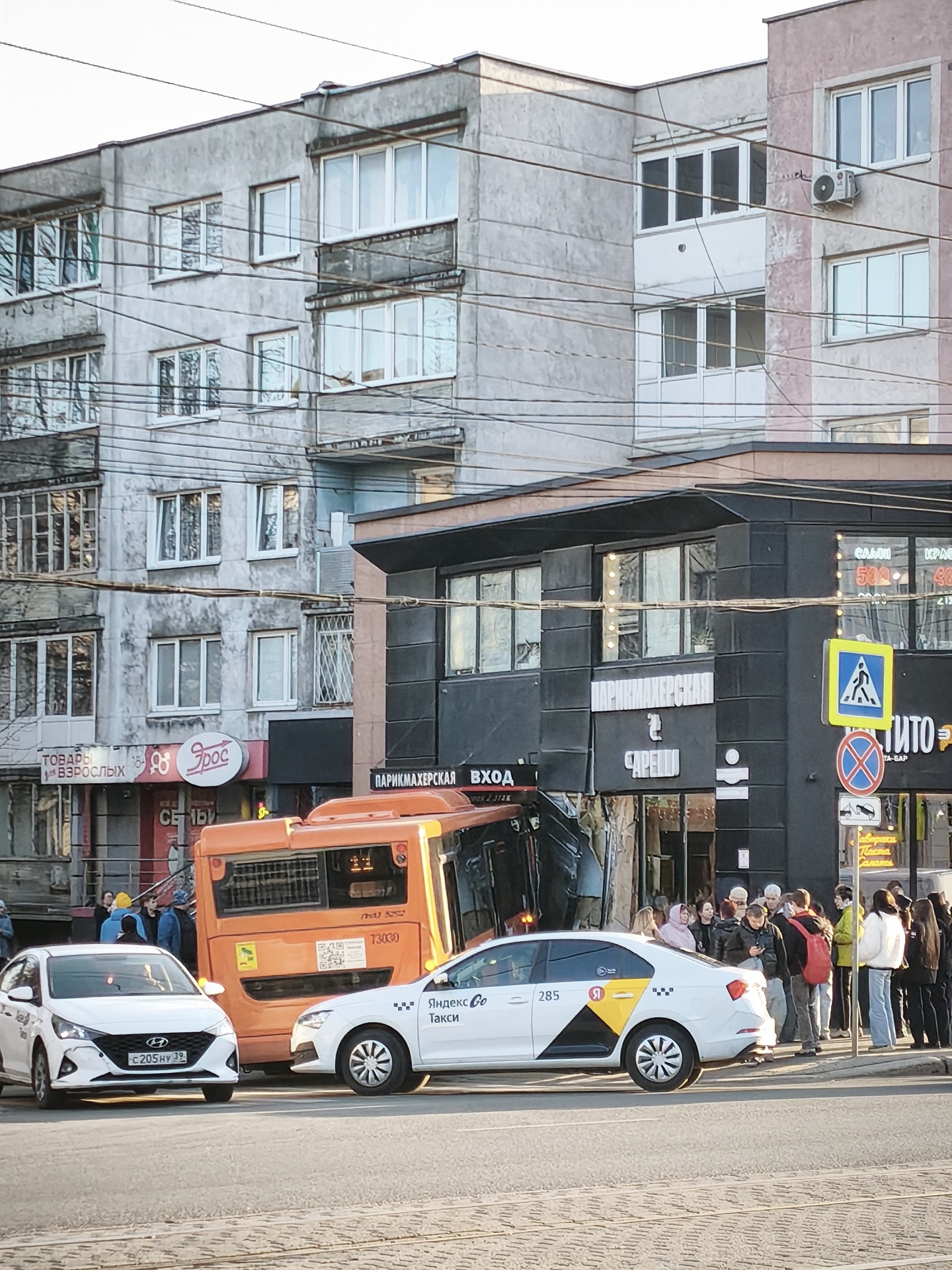 ДТП произошло в пятницу, 27 марта, около 17:40. Автобус маршрута №11 проломил стену парикмахерской. По словам очевидцев, водитель потерял сознание. Другие подробности уточняются. О пострадавших среди пассажиров и прохожих не сообщается.