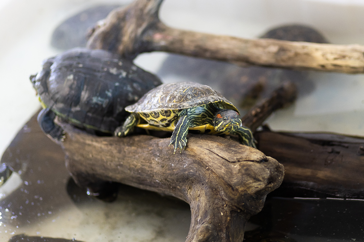 Больше всего здесь черепах. Красноухие, среднеазиатская Зина, желтоухий Джеймс с отитом — ухо никак не восстановится, хотя его чистили под наркозом московские ветеринары. Ещё одна черепаха сейчас в клинике: она перестала есть и её кормят через зонд.