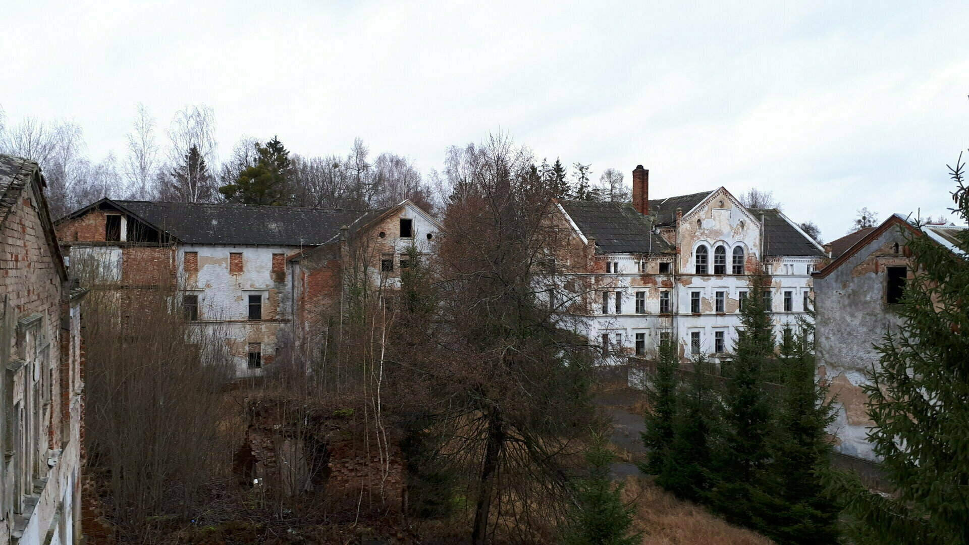 Алленберг строили в 1848–1850 годах как психиатрическую клинику. Архитектура отражала медицинские представления того времени: неороманский стиль и готические элементы сочетались с обилием света. Считалось, что такая среда должна помогать пациентам восстанавливаться. Первые постояльцы попали в клинику уже в 1852-м, а к началу XX века их число превысило тысячу — больница стала одним из крупнейших профильных учреждений региона. В 1940 году больницу закрыли, часть пациентов погибла, остальных распределили по другим учреждениям или передали семьям. После войны в Алленберге разместилась воинская часть, просуществовавшая до 2013 года. С этого момента комплекс стоял заброшенным и постепенно разрушался.