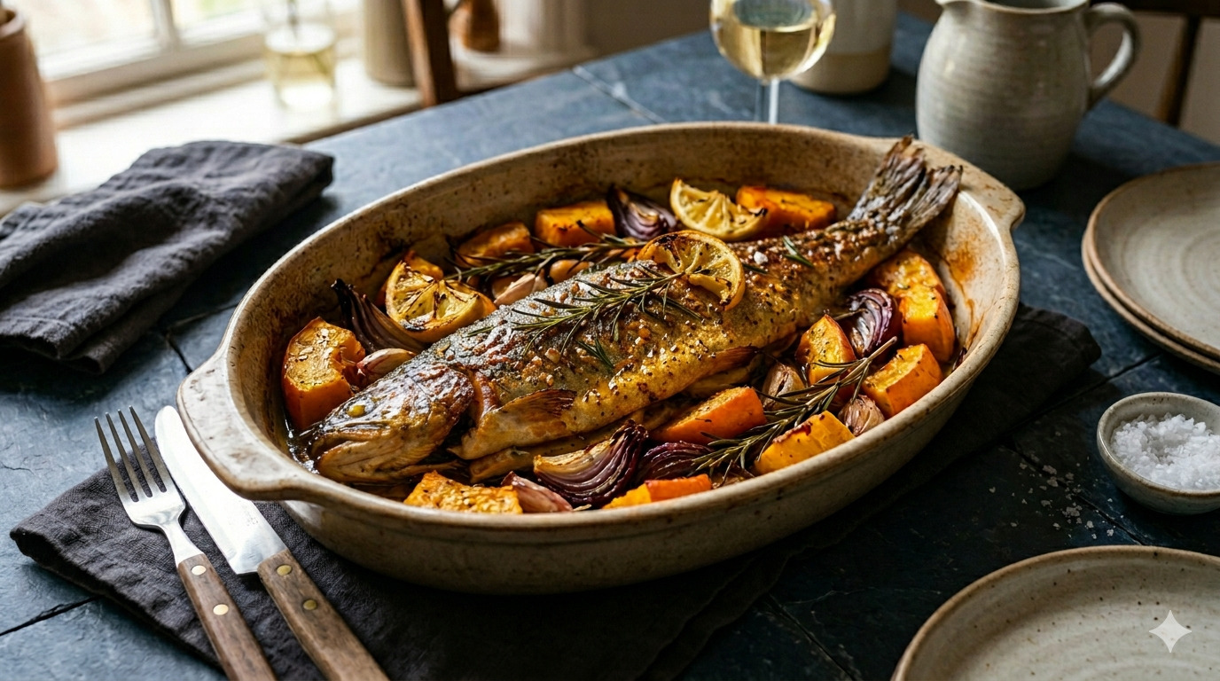 Обед, после которого он встал на колено и позвал меня замуж: как правильно запечь рыбу с тыквой и пряными травами
