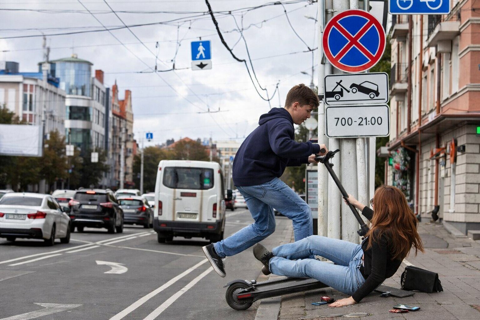 Речь про популярное место возле гостиницы «Калининград» (Ленинский проспект, 67), напротив ТЦ «Меркурий». Женщина шла на остановку со стороны ТРЦ «Плаза». Она услышала шум и поняла, что сзади по тротуару едет группа молодых людей на электросамокатах. Но среагировать калининградка не успела. Несколько человек сманеврировали в потоке людей, а один — не смог.
